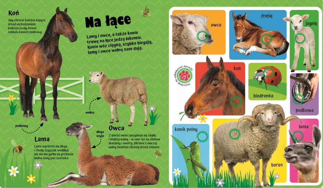 - Proste wierszyki oraz krótkie opisy, które wprowadzą maluchy w świat wiejskich dźwięków i zwierząt.