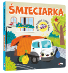 Książeczka została przygotowana z myślą o maluchach – jest w całości wykonana z grubego kartonu i ma bezpieczne, zaokrąglone rogi. Dzięki temu dzieci mogą ją samodzielnie oglądać, poznając wygląd i pracę śmieciarki.