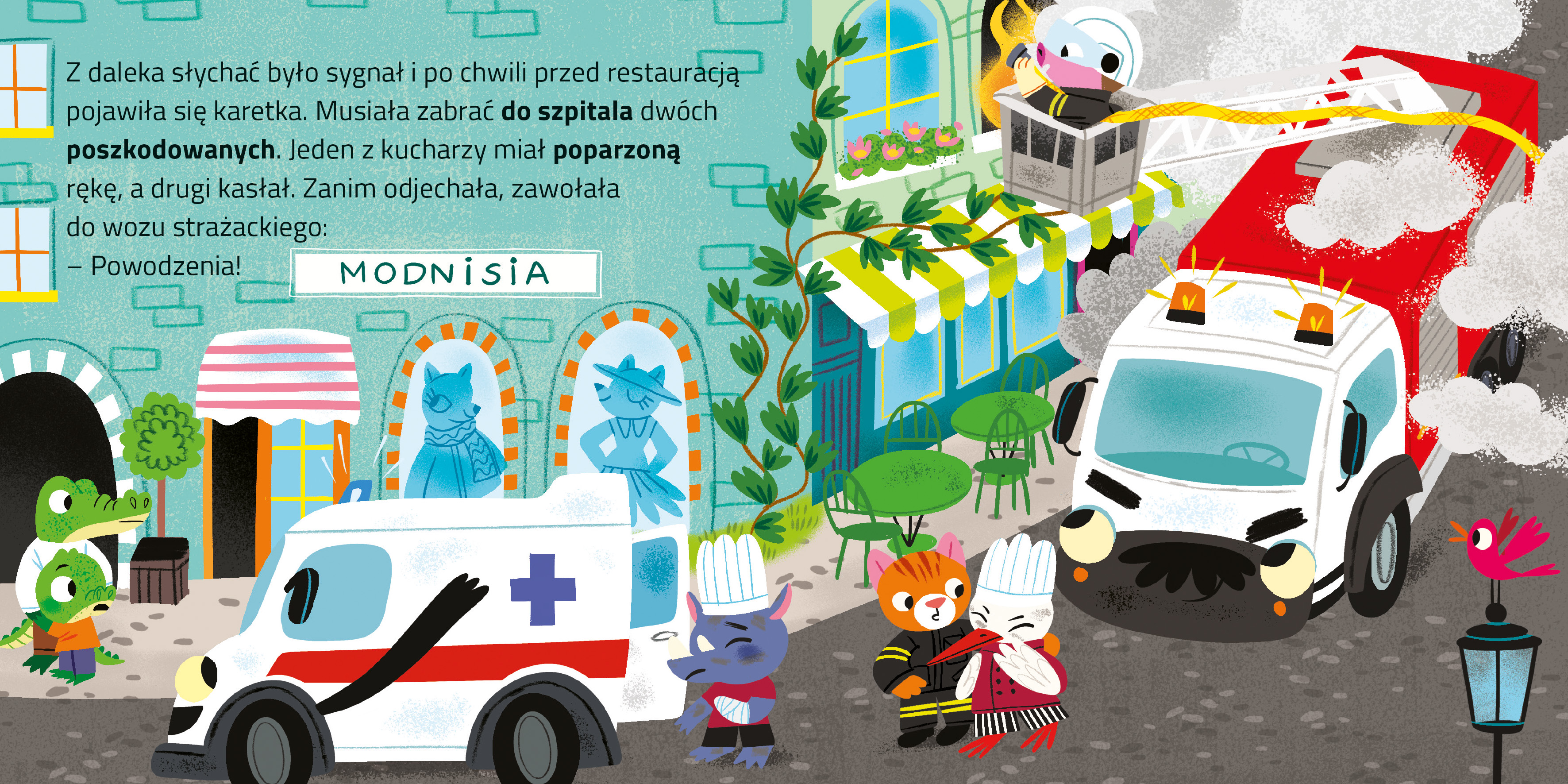 „Odjazdowe samochody. Straż” to pełna humoru i emocji książeczka kartonowa dla dzieci, która opowiada o dzielnym wozie strażackim. Maluchy dowiedzą się, jak wygląda praca strażaków i co robi wóz strażacki, gdy pojawia się pożar. Prosta, przystępna dla kilkulatków treść oraz zabawne, kolorowe ilustracje wciągają najmłodszych czytelników w świat przygód i uczą, że w trudnych sytuacjach warto szukać rozwiązania i wsparcia u przyjaciół.